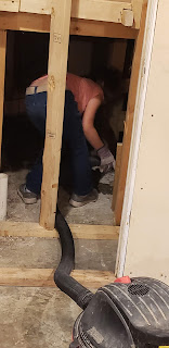 The sink cabinet: (We knew it needed some repairs.) We discovered that the counter top was not flush with the wall. Water that gets behind the sink flows down behind the cabinet and onto the bottom. Super moist. It's precarious. However, it's still standing and in place.
